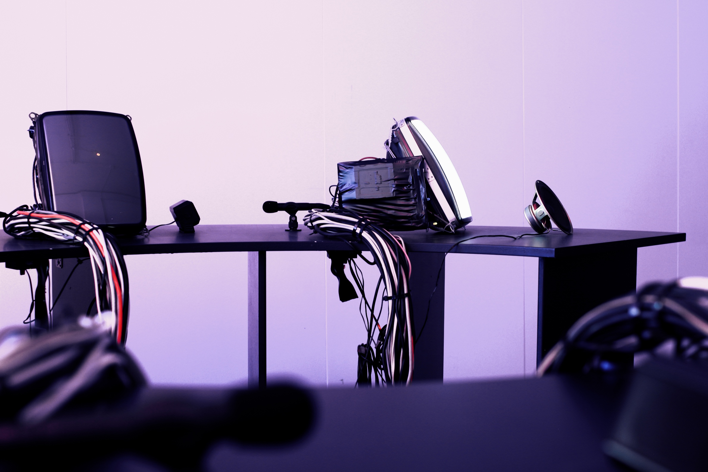 In 2017 for STRP Festival, I created Digital Whispers, an interactive installation that sets seven computers and one human into a game of Chinese whispers. Machine ears and robot voices pass on messages between themselves. Like the original game, inevitable errors occur, creating word-chimeras and resulting in absurd sentences only a robot could have created. The final phrase spoken back to the visitor, often with surreal overtones, leaves viewers to question the machine as a reflection of humanity.